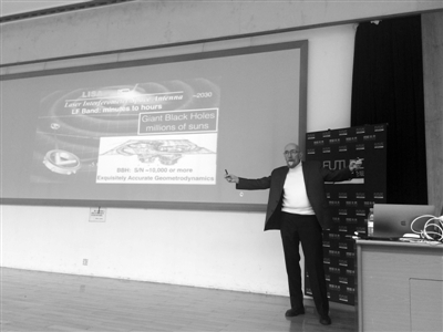 基普·S·索恩在講臺上暢談引力波的“前世今生” 本報記者 李釗攝